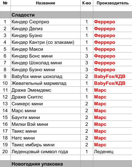Опубликовано в Составы подарков